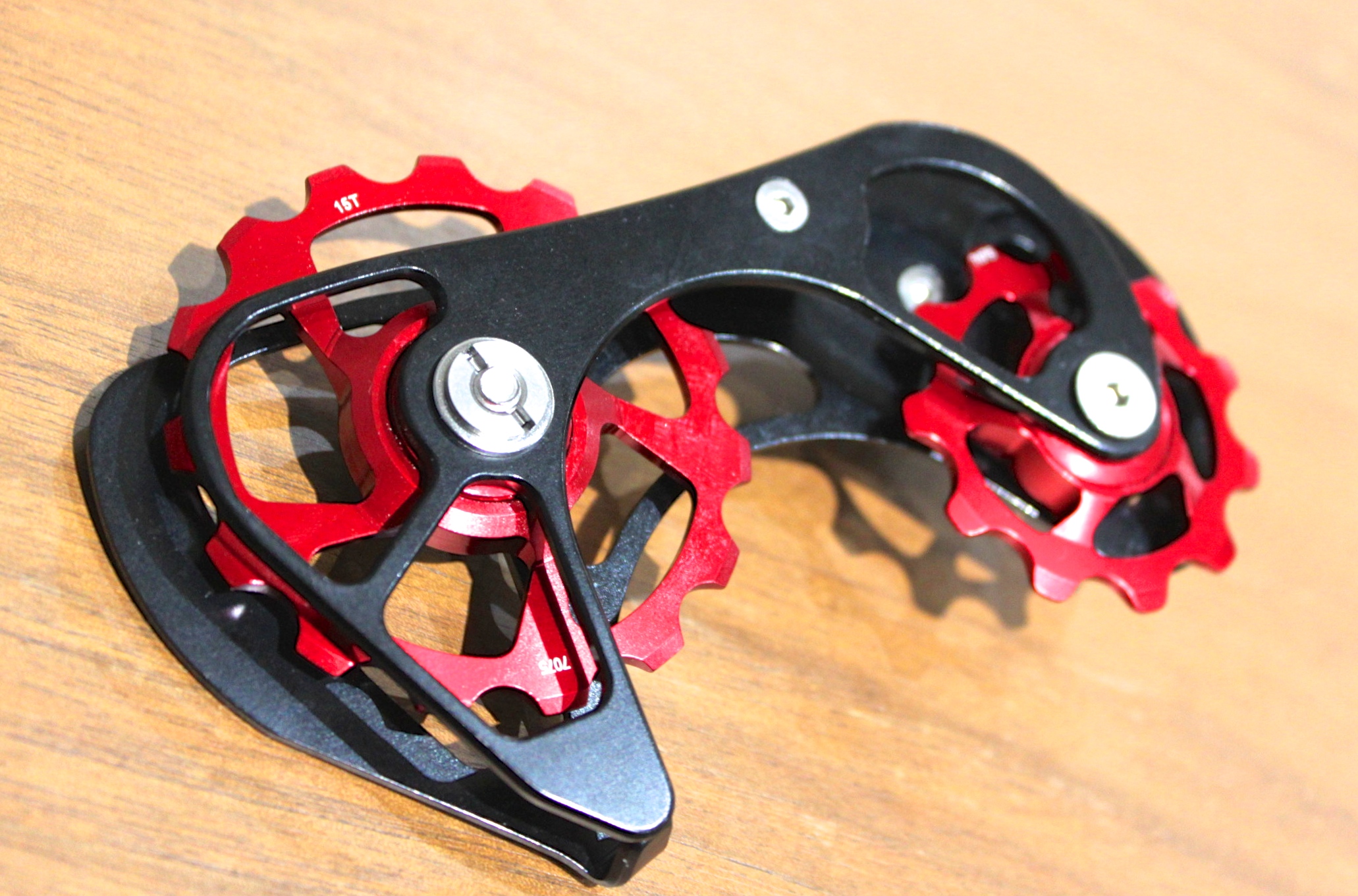 これはリヤディレーラー(後ろ変速機)にとりつけるケージとプーリーですが