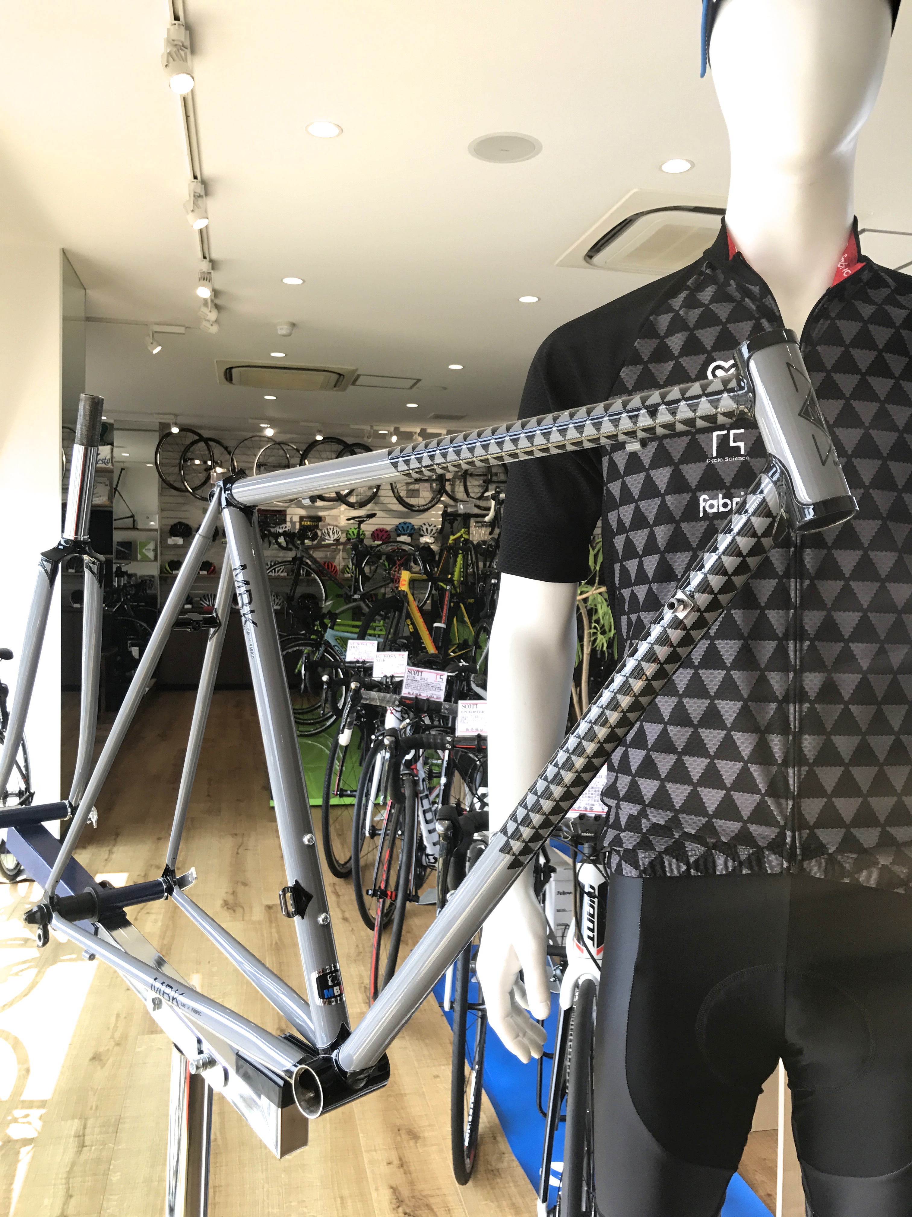 を基調としたデザインで、ショップジャージ同様に今回は「Cycle Science」
