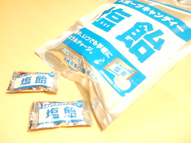 そこで水と一緒に、休憩中などにこの「塩飴」を舐めていれば