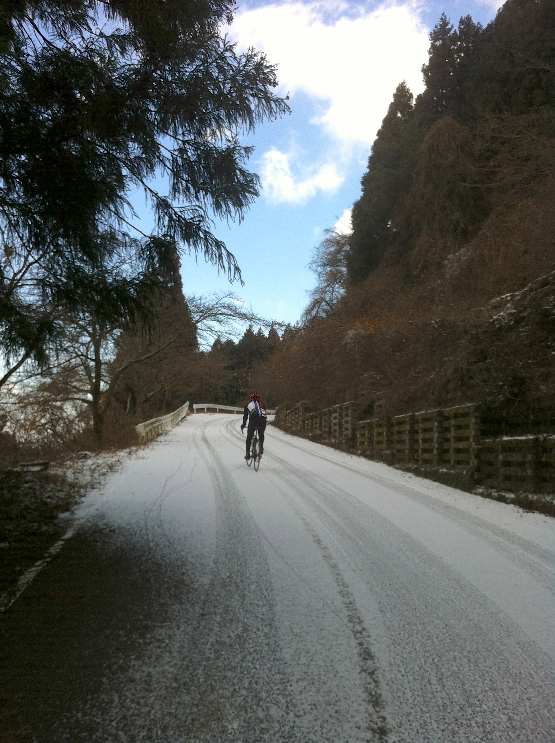 あたりから少しづつ写真のように路面に薄っすら雪が・・。