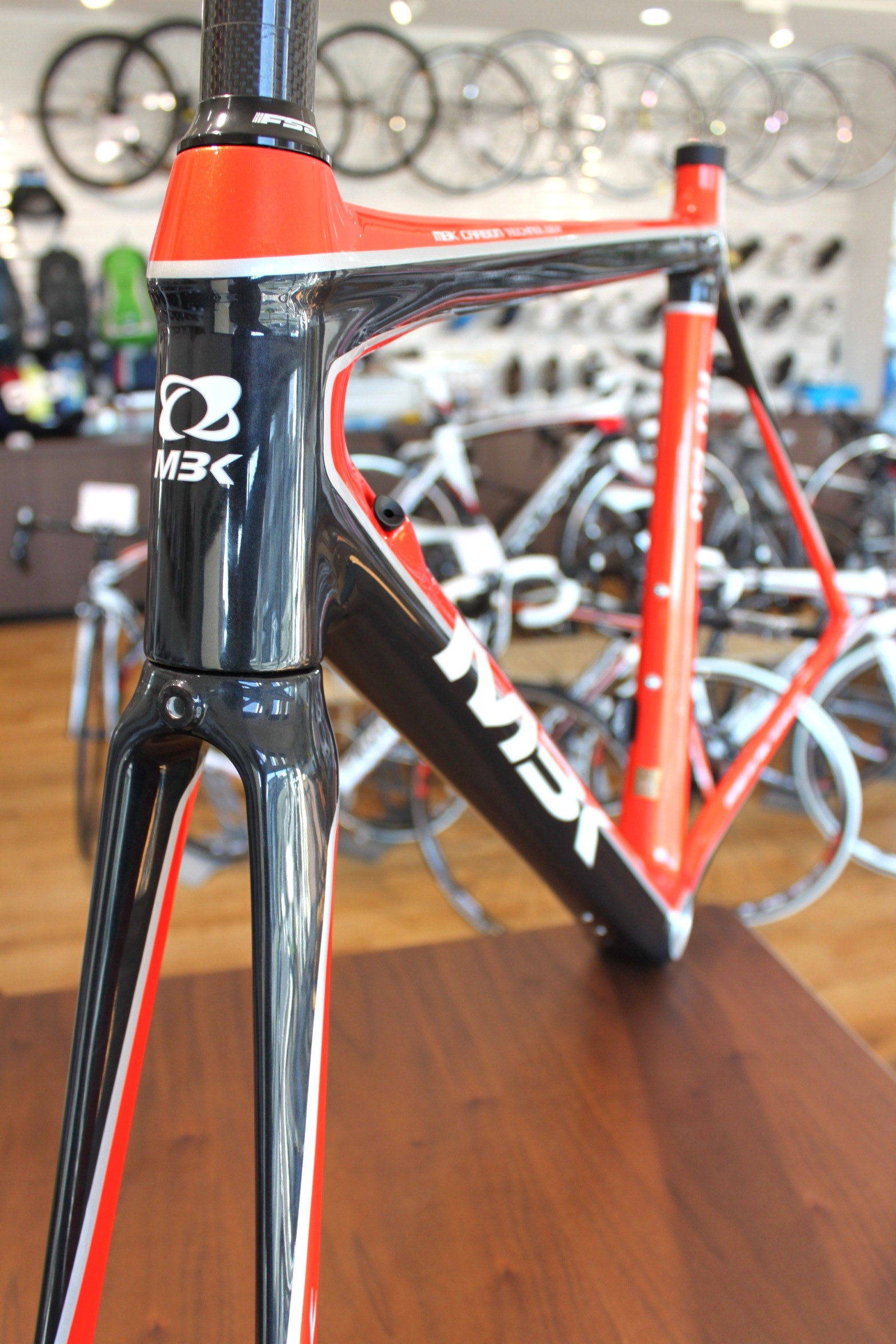 頂いたのは、2014年モデルから発売されるエントリーカーボンフレームの「RS8」という