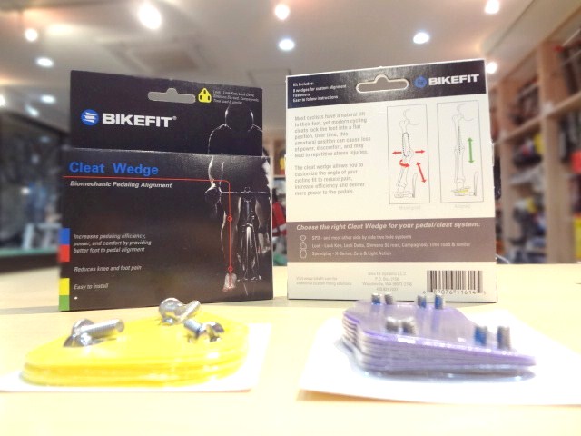 このアイテム(シム)はクリートとシューズの間に入れ、足裏の傾きを補正するものです。