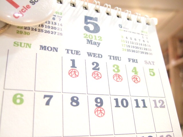 来週になりますが、5月1日(火)~4日(金)までの4日間