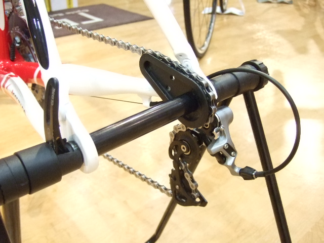 ディスプレイ台と併用すれば後輪を外してコンパクトに乗せることも可能です。