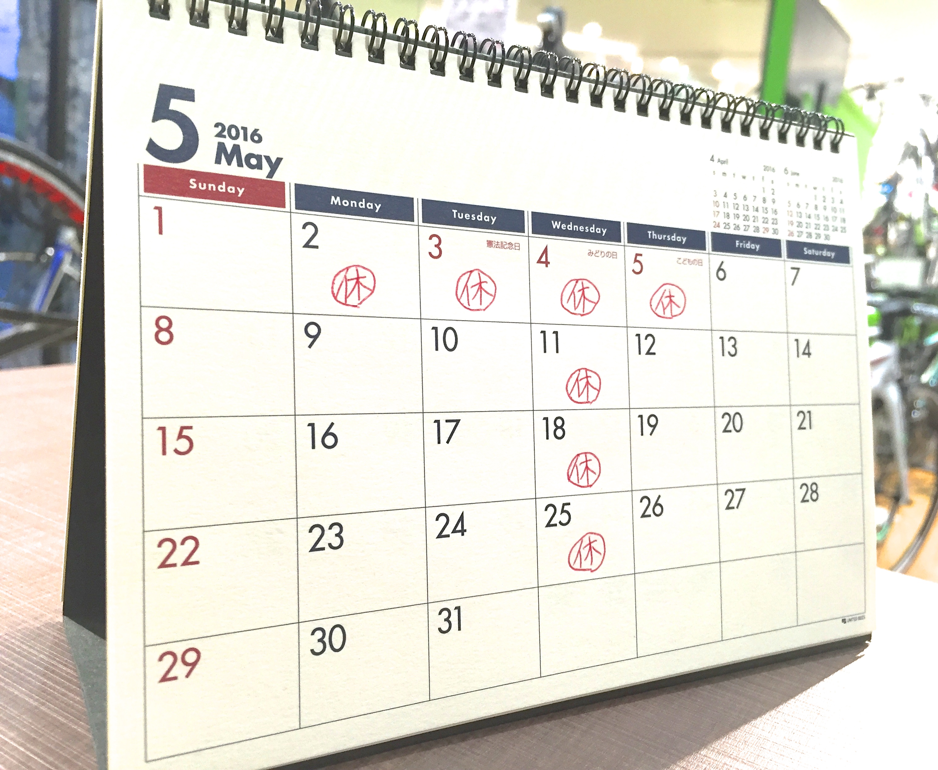 再度のご案内になりますが、ゴールデンウィーク期間中の店休業日の