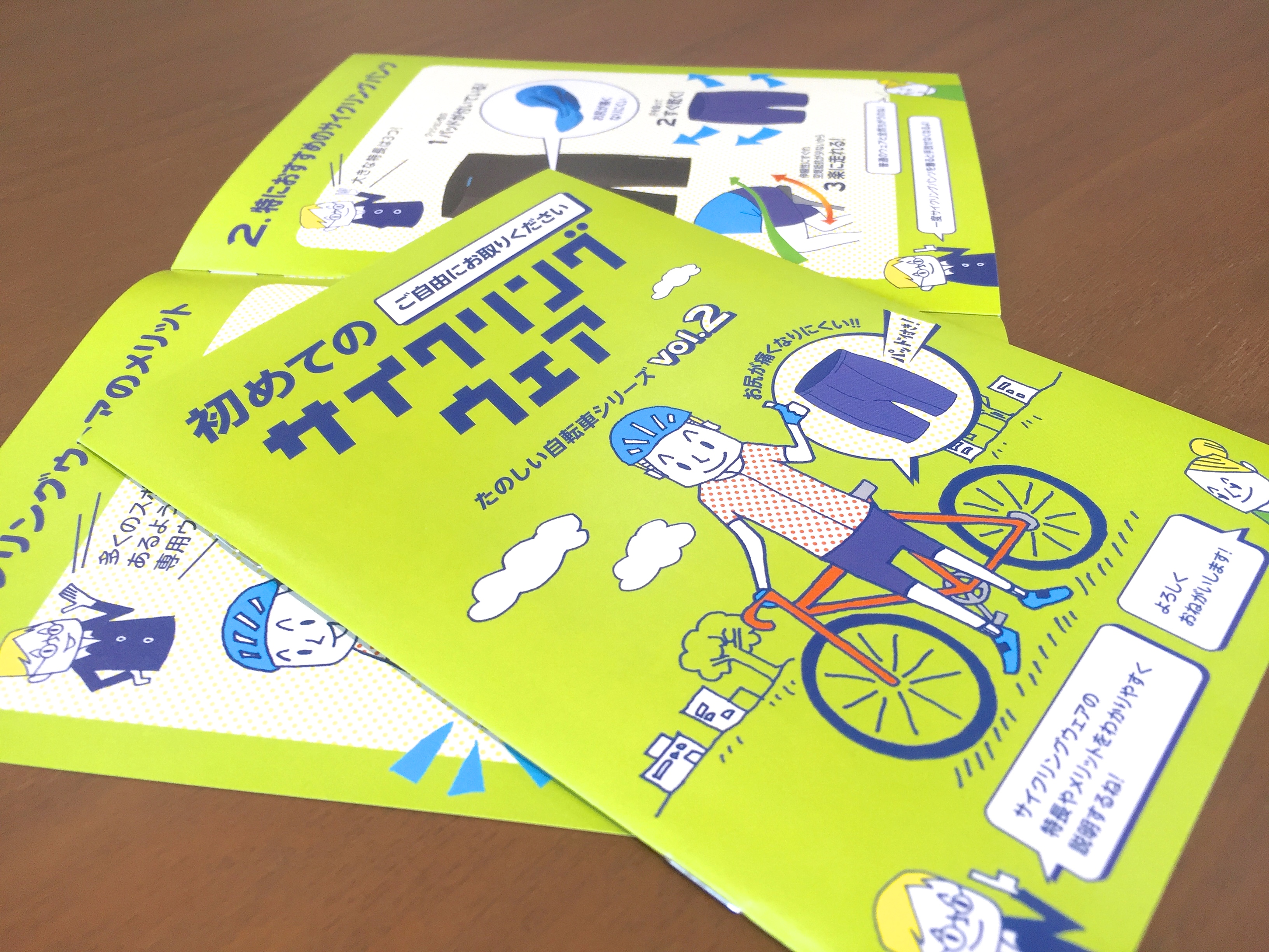 本日、サイクリングウェアの特徴やメリットを分かりやすく解説された小冊子が